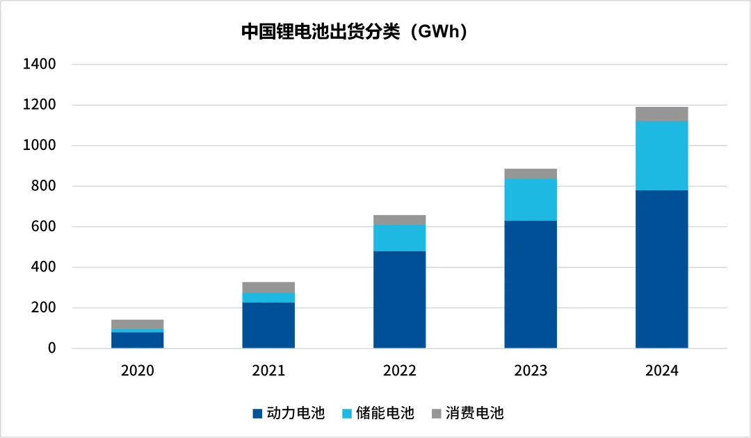 其中,动力电池和储能电池均属于发展较快、获得较多政策支持的战略方向,近年来在资本市场上也备受关注。根据GGII的数据,动力电池2024年的出货量为780GWh,同比增速24%,储能电池2024年的出货量为340GWh,同比增速65%。
