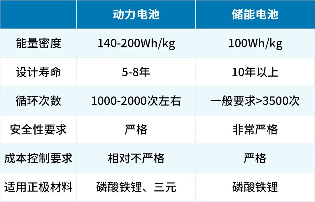 储能电池的核心诉求是“长时间稳定储放电能”,而对设备的体积空间的约束要求远小于动力电池。