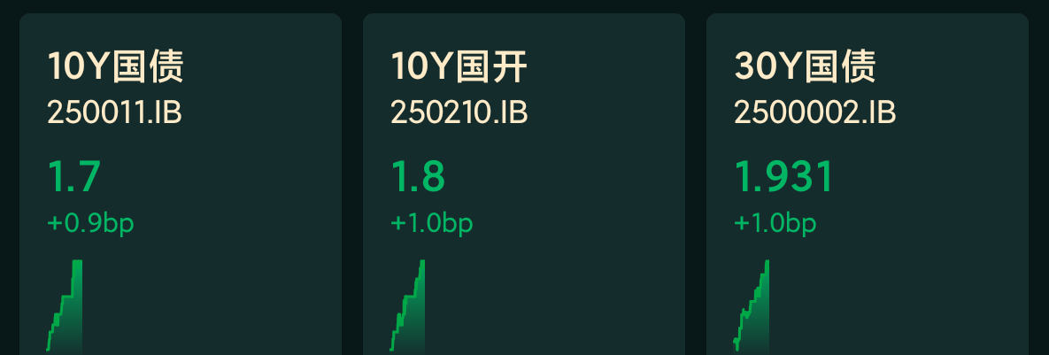 十年期国债收益率:1.7%,+0.9BP(国债收益率越跌,债市越涨)