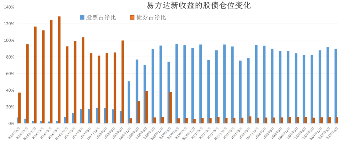 下图为基金成立以来的股债仓位变化(2015Q2-2025Q2)