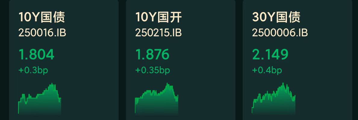 十年期国债收益率:1.804%,+0.3BP(国债收益率越跌,债市越涨)
