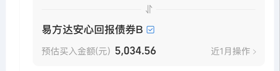 $易方达安心回报债券B$ +5K,目前大盘韧性还是比较足,但权益类波动也大,遇到回调不一定能拿得住,固收+方向还是不错的,上涨能吃肉,震荡起来也不用担心说回撤会太大。今天继续补仓一笔易方达安心回报债券B,它是一只中高波固收+,大仓位是信用债和利率债为主占比84%,另外搭配了19.45%的权益+17.96%的可转债增强,攻守兼备,近一年收益率8.89%,近十年上涨了77.80%,属于老牌绩优基了,业绩表现稳定,我再补仓一笔拿长期。