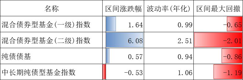 区间涨跌幅排名:二级债基>一级债基>纯债债基>中长期纯债基指
