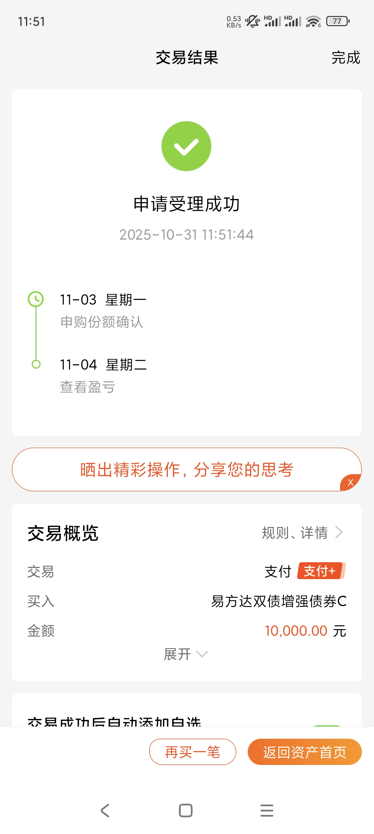 本次继续加仓1万元,累计持仓3万元,预计后续持仓规模达到10万以上。