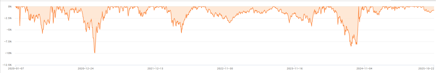 对资产配置来说,它的风险收益特征刚刚好:长期波动率远低于股票基金,最大回撤控制在合理范围,把它作为持仓资产的“稳健板块”再合适不过。