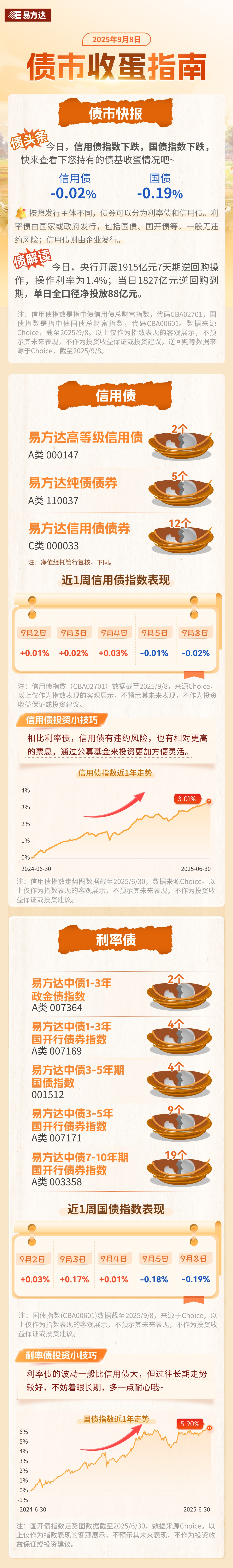 【债市收蛋指南】9月8日,信用债指数下跌、国债指数下跌
