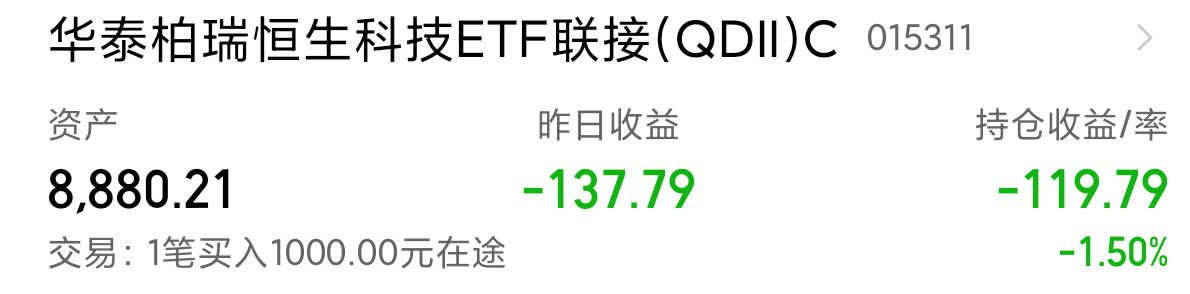 买进1000的 $华泰柏瑞恒生科技ETF联接(QDII)C(OTCFUND|015311)$