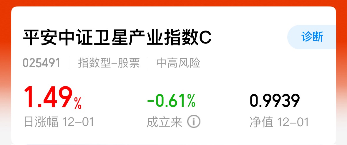 今天A股三大股指均涨,两市成交超1.8万亿元,航天、通信等板块掀上涨潮。。$平安中证卫星产业指数C$今今天上涨1.49%哦,股票资产投资占比不低于90%,聚焦产业上下游优质股,跟踪误差小,继续看好它!