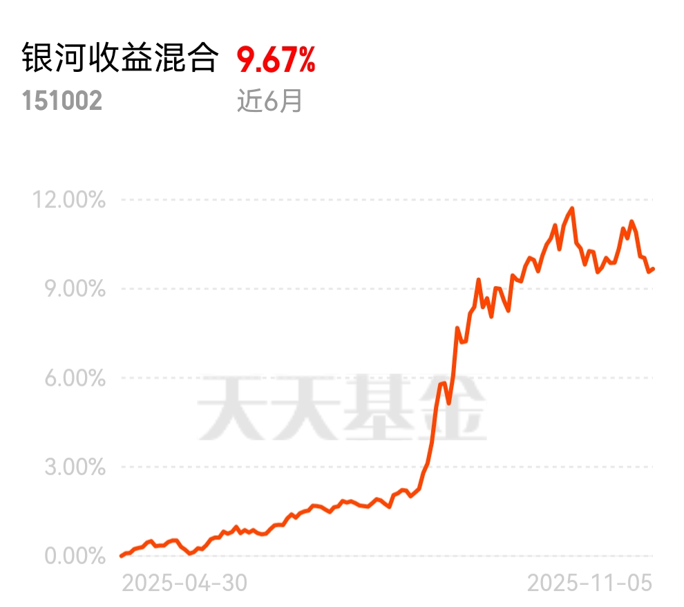 所以,考虑股债跷跷板的不确定性风险,我还是更看好这支$银河收益混合$ ,作为混债,也是持仓债券为主了,底仓防守先做好,同时搭配部分半导体、通信计算机等成长资产做进攻,这种股债均衡策略,类似昨天科技调整,也还是能守住的,算是对冲了双市场的轮动,近3个月收蛋741个了,近1年也收了890个蛋,确实还不错咯!
