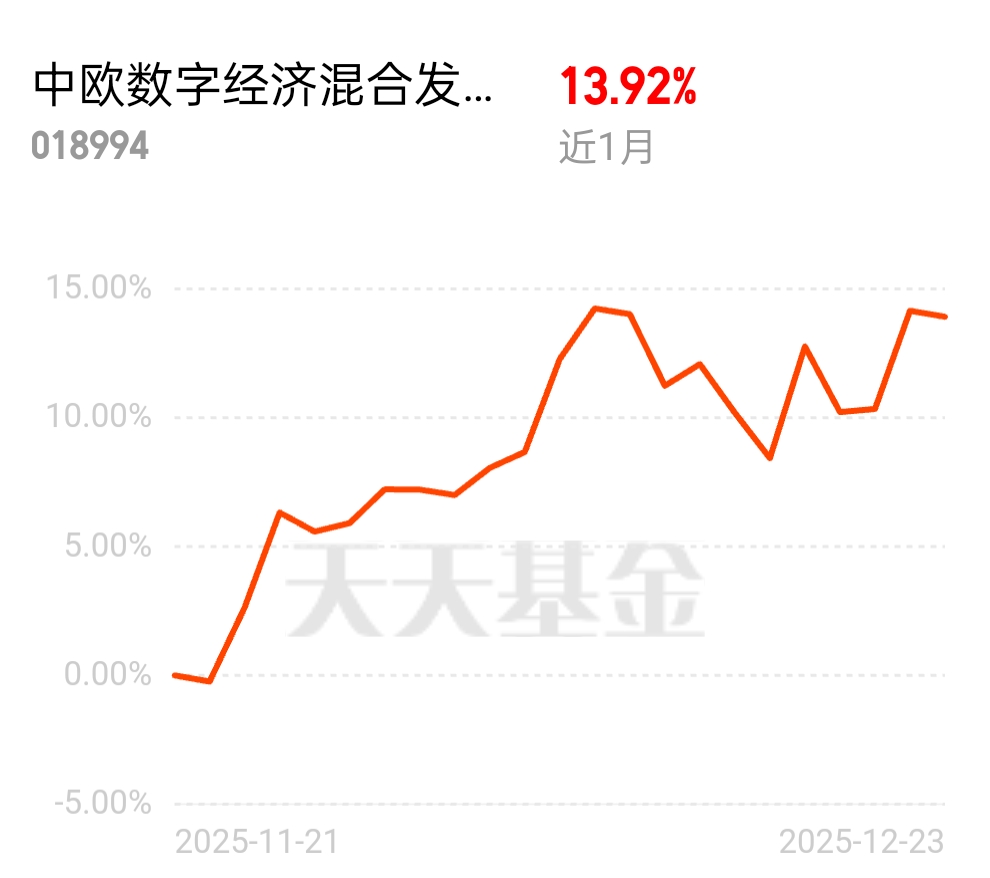 摩根大通上调云厂商资本开支预期,800G/1.6T 光模块成刚需,光纤价格回升带动产业链回暖,$中欧数字经济混合发起C$ 近 1 个月涨 13.92%,贴合短期算力需求热潮,配置时机很合适。