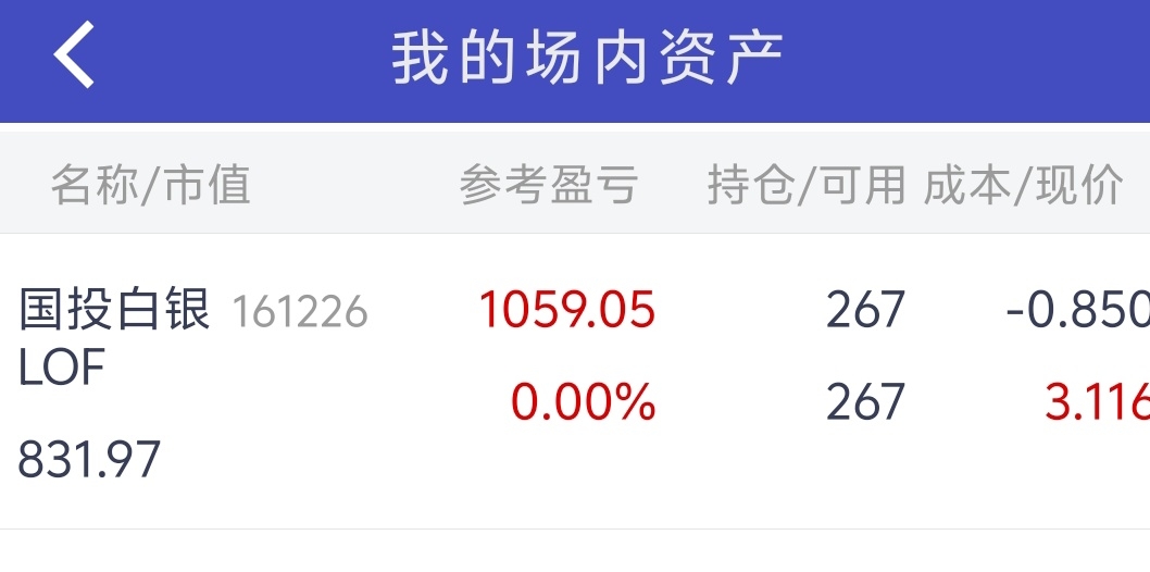 周一申购的国泰商品和周二申购的白银到账了。挂跌停不犹豫。感谢主力