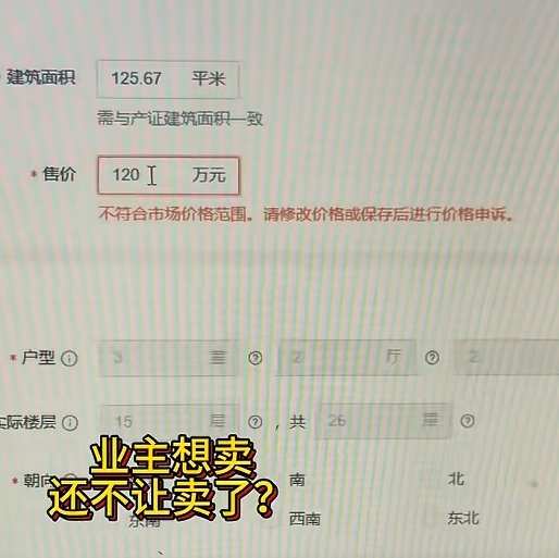 中介想和业主联合起来低价出售房屋,输入几次破坏市场经济的价格,然而根本提交不了