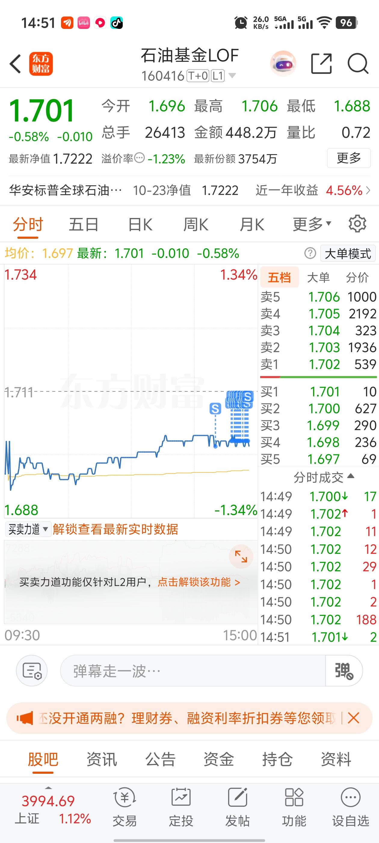 $石油基金LOF(SZ160416)$ 35万跑完了,明天原油大跌
