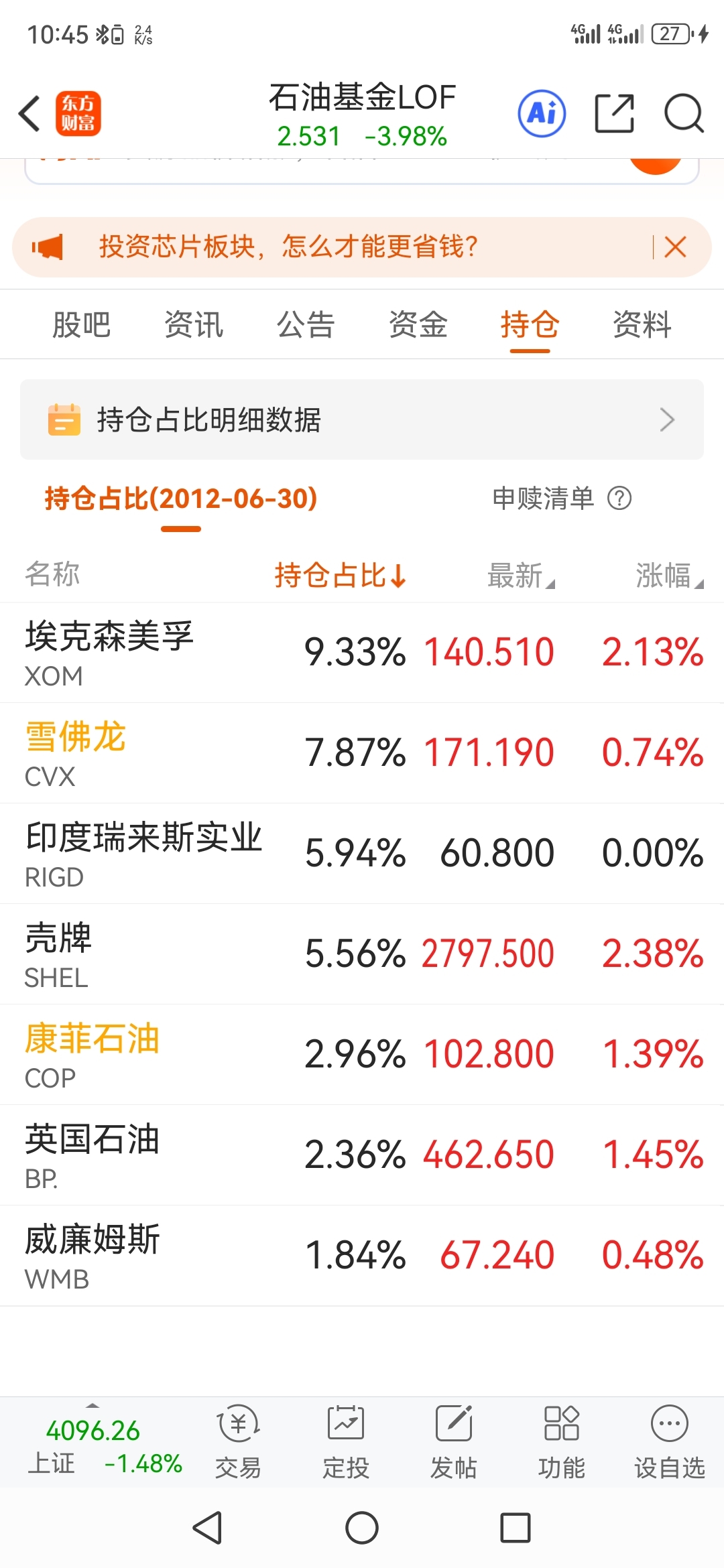 $石油基金LOF(SZ160416)$ 这个基金持有的是国外石油,涨了