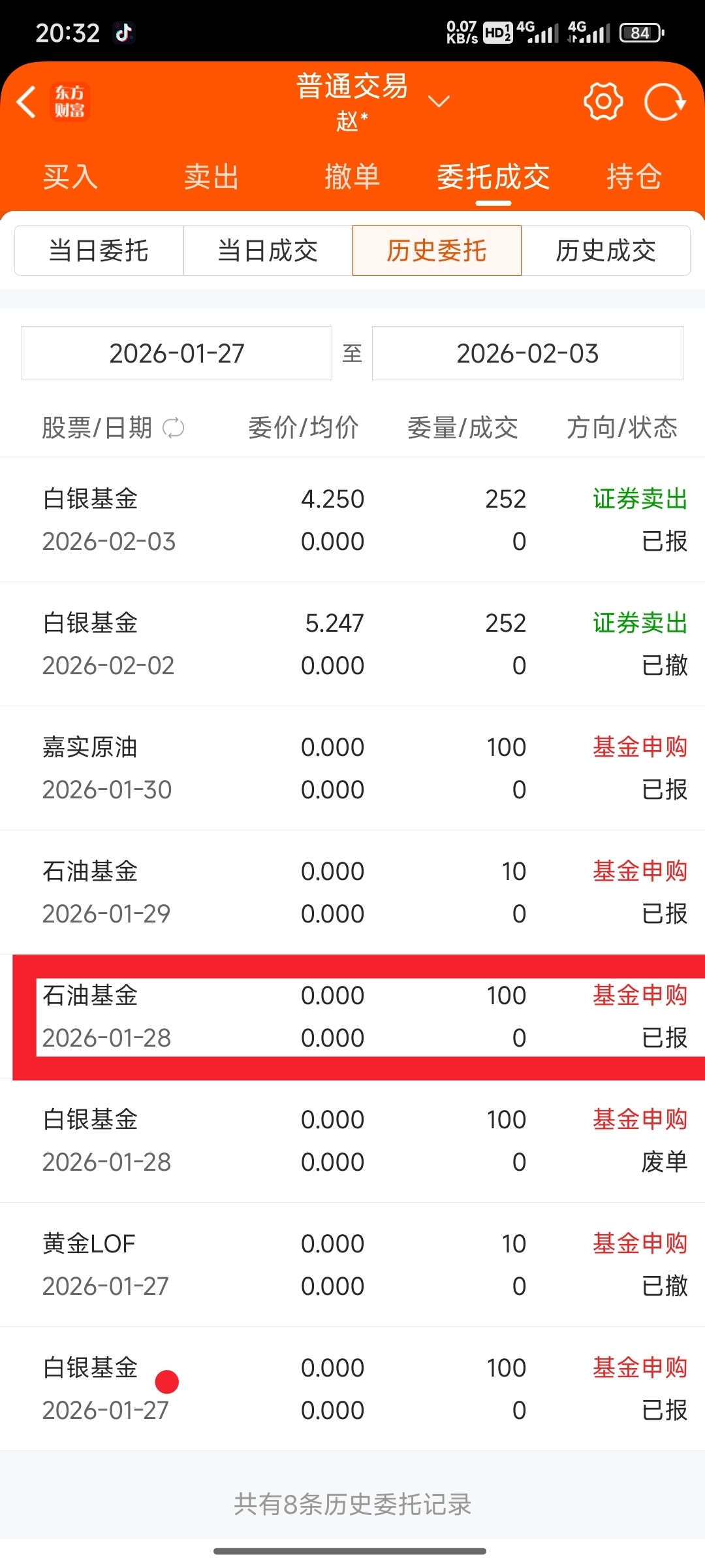 $石油基金LOF(SZ160416)$ 哪位大老师讲解下,我28号晚上申购100石油,至今显示已报,但是没有这个份额,29号只能买10块钱,显示已报,并且有10块钱的份额,那么那个100的投资钱去哪里了,一下就是截图。
