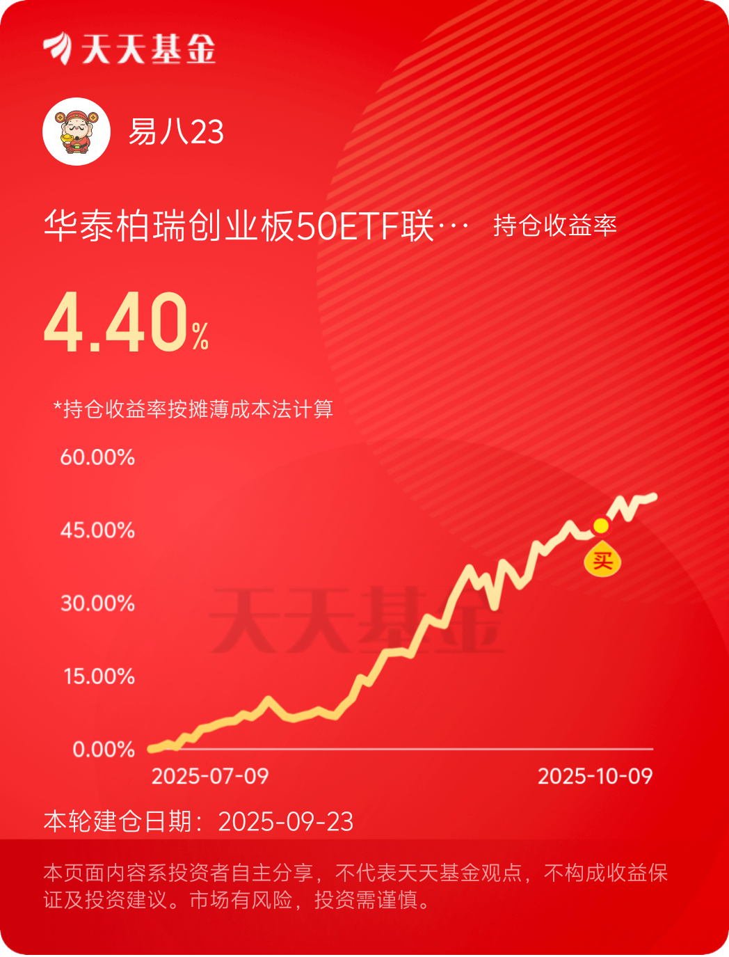 专业分析表明,$华泰柏瑞创业板50ETF联接C$ 近三个月51.72%的涨幅,反映了市场对科技创新板块的重新定价。坚持主线思维才能把握大趋势。#晒收益#