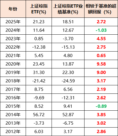 一方面是因为上证指数ETF主要包含了股票的价格指数,并不包含成份股分红;另一方面,上证指数ETF还通过打新策略等低风险投资来增厚投资收益。