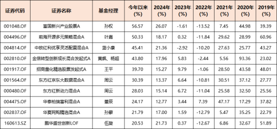 最后一起看看从2019年-2025年持续跑赢沪指的这10只主动权益基金明细