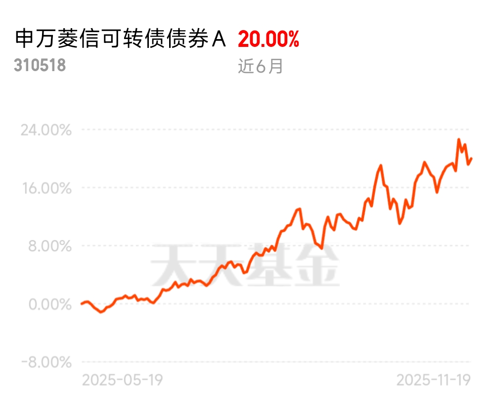 现在低利率时代,大家都在找稳健又能赚点的理财,申万菱信可转债债券A就很合适。它近6个月收益达到20.00%,既能靠债性托底稳当点,又能跟着股市行情赚收益,不用天天盯盘,普通人也能轻松把握机会。$申万菱信可转债债券A$