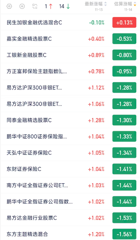 证券保险行业基金估值盘后检阅,早知基金涨跌,安心度周末