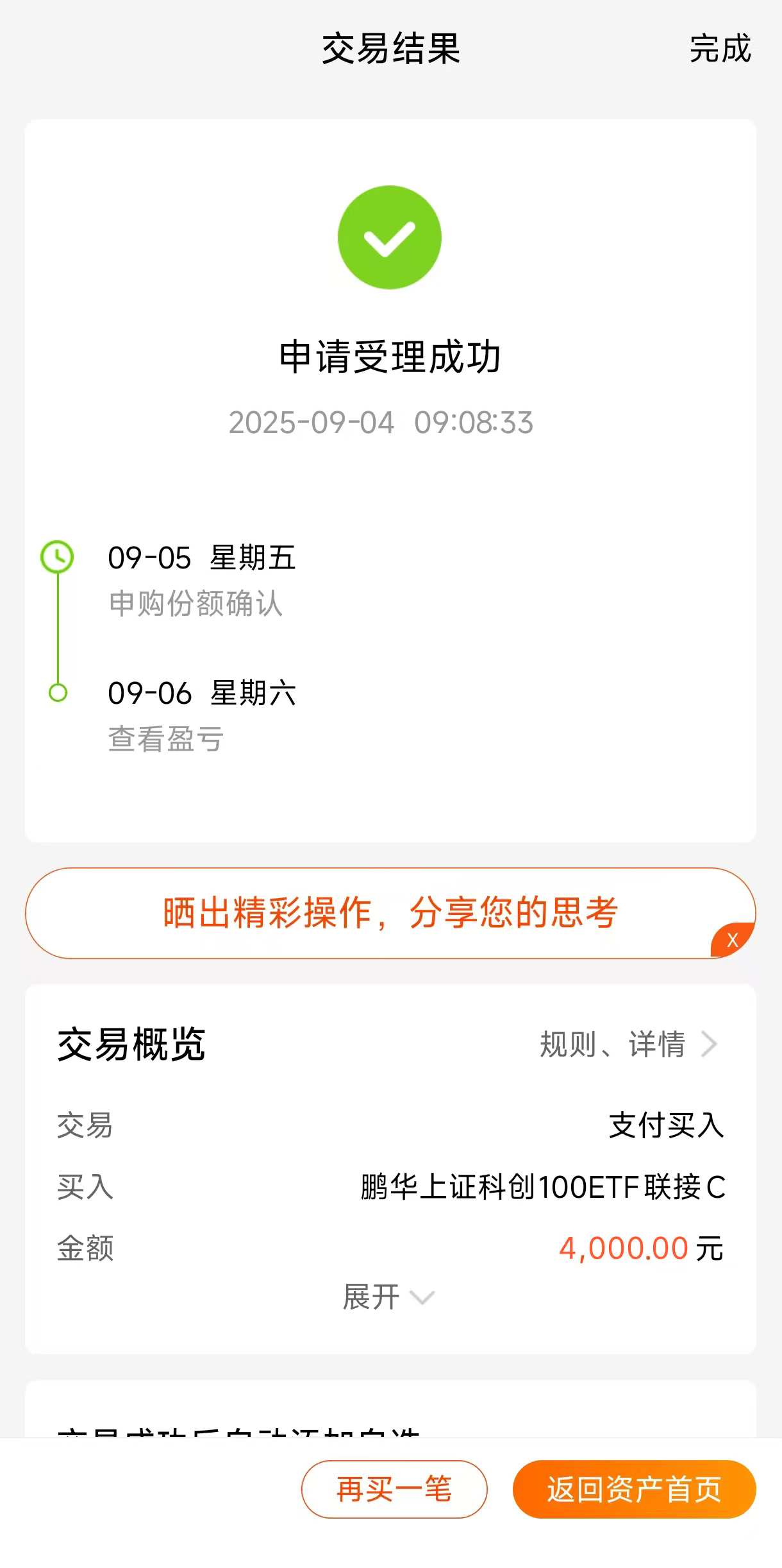 市场近期整体表现积极,科创100指数走势稳健。我持有的$鹏华上证科创100ETF联接C$(019862)紧紧跟随指数,感觉这种间接投资的方式确实简单省心。它主要投资于跟踪科创100指数的目标,相当于分散布局了一篮子科创板公司,避免了单一波动带来的影响,比较适合追求长期稳健增长的我。#九月基金投资策略#