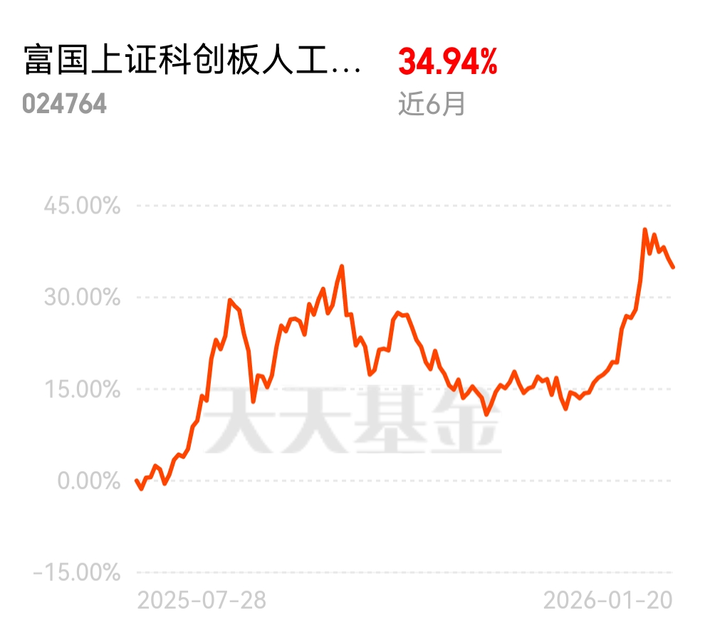 这只 AI 基金太能打,富国上证科创板人工智能今日大涨 2.13%,成立至今 32%+ 涨幅,近 6 个月 34.94%,澜起科技等龙头持仓超靠谱