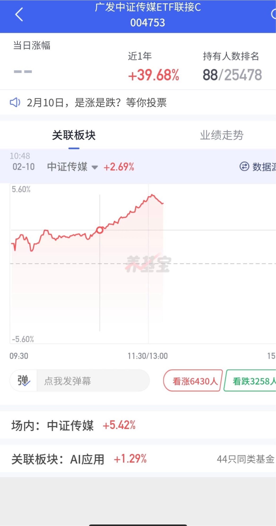 $广发中证传媒ETF联接C$传媒板块开启两连涨,现在盘中5个多点,节前布局好机会