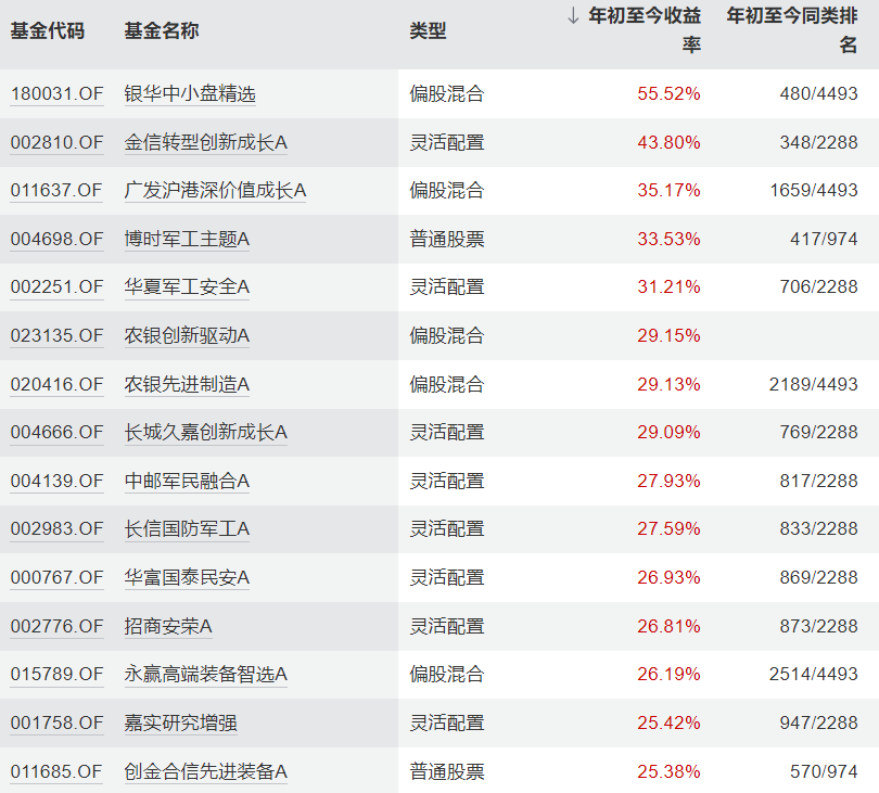 2025年以来军工主题基金涨幅前15名