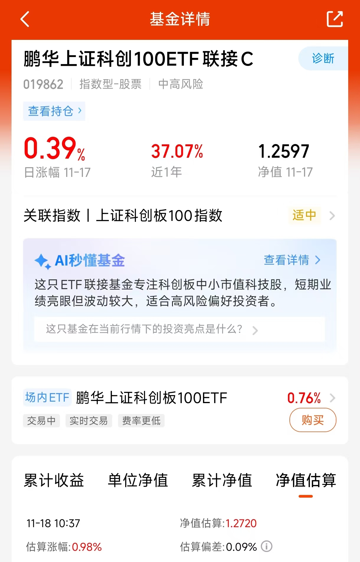 分享一下,$鹏华上证科创100ETF联接C$(019862)这类产品在我看来,是参与科创板行情的实用工具。科创板涵盖了很多关键领域的创新企业,这些领域的发展受到广泛关注。通过指数化投资,可以分散单一公司的风险,享受板块成长的平均收益。当前环境下,科创板公司的整体业绩表现成为市场关注的焦点,这类产品为投资者提供了便捷的参与方式。#今年买基金赚了多少钱?#