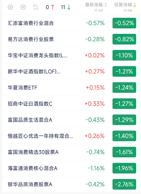 指数涨跌幅:中证消费指数(000997)收盘跌1.72%,报1712.03点,成交额223.68亿元,食品饮料、家电板块领跌。