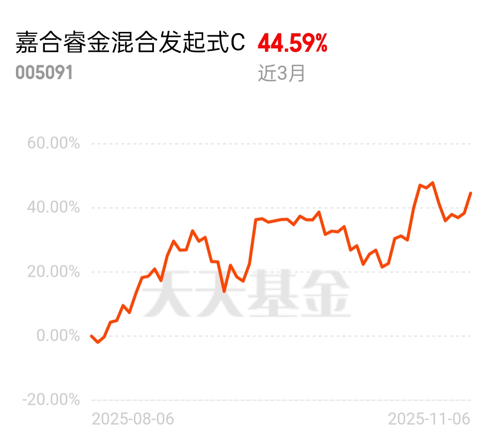 现在市场资金追捧科技成长股,相关板块涨势如虹,赚钱效应拉满。嘉合睿金混合C精准踩中风口,近3个月收益高达44.59%,布局CPO和存储芯片,这两个方向是当下市场热门,适合把握科技行情的朋友。