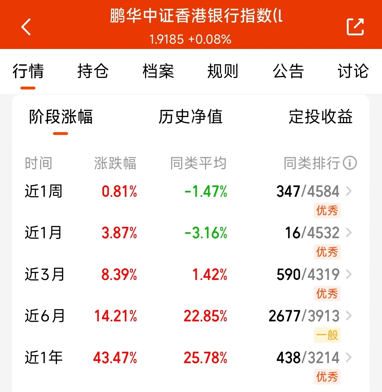 市场起伏时$鹏华香港银行指数(LOF)C$(010365)所投资的板块,由于其自身特点,这些标的通常估值水平相对合理,且能提供可观的股息回报,这在一定程度上可能对价格形成支撑。近期市场表现也印证了这一点,当其他一些领域调整幅度较大时,该基金跟着的指数回调相对有限。这种特性对于希望降低组合整体波动率的投资者具有吸引力。考虑在当前市场环境下增加一些此类配置,或许能让投资旅程更平稳。理性投资,放眼长远。#3800点的A股值得加仓吗?#