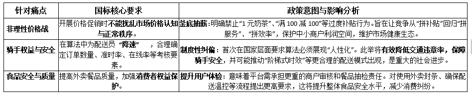该标准并非单一规定,而是一个针对“平台-骑手-消费者-商户”四方生态的系统性治理框架,直击行业长期存在的核心痛点。