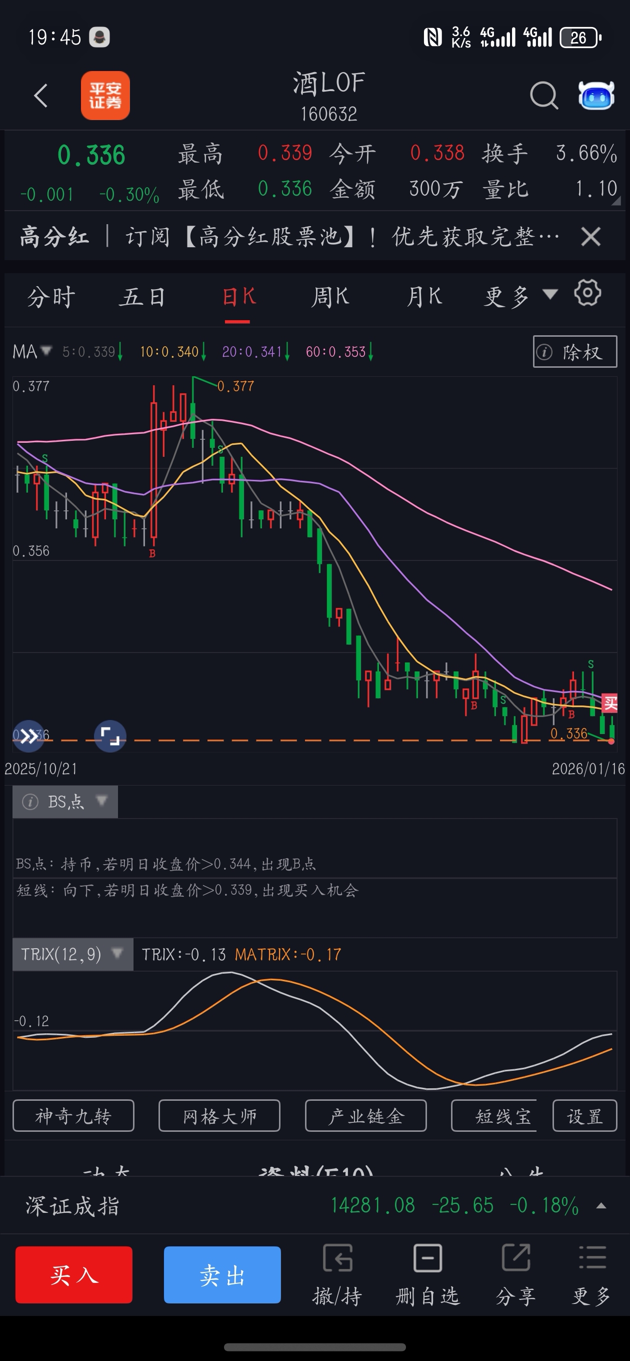 $酒LOF(SZ160632)$ 336买入会套多的,说实话酒要放久一点才香!