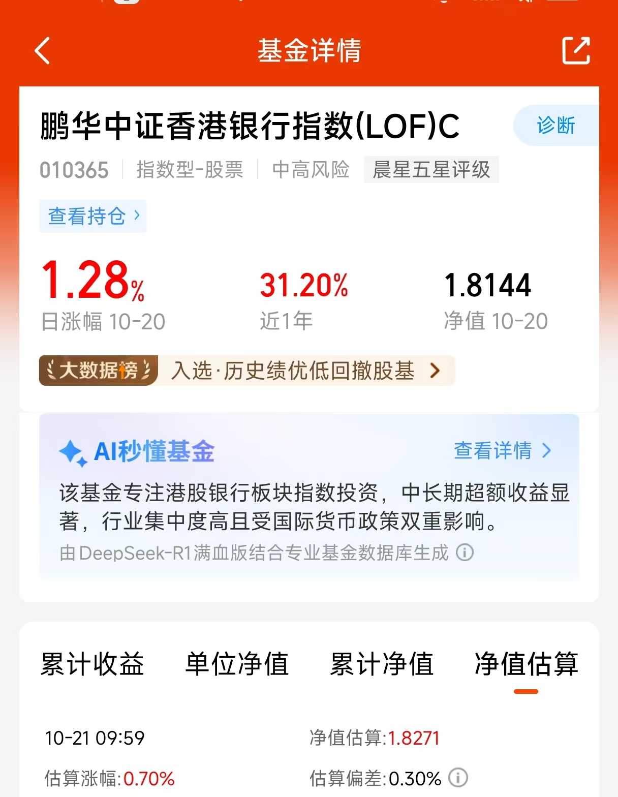 是不是觉得有时候选择太多反而无从下手?$鹏华香港银行指数(LOF)C$(010365)给了我一个简单的答案。它主要投资香港上市的银行,这些机构大家耳熟能详,业务根基扎实。市场热点来回切换,但这些基础性行业的价值始终在那里。特别是当市场因为某些短期因素出现调整时,这类资产凭借其内在价值和分红回报,往往能获得一定支撑。这种“简单”的投资逻辑,在复杂的市场环境中显得尤为可贵。#深地经济成新风口!产业链如何投资 ?#