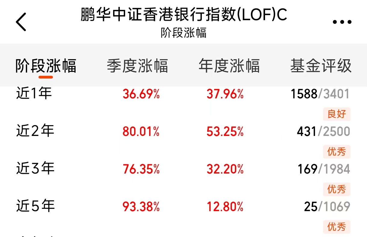 今天我的账户新增了一笔持有,是$鹏华香港银行指数(LOF)C$(010365)。我考虑的是,投资组合需要有不同的“角色”,有的负责争取弹性,有的则负责提供稳定。港股银行板块,凭借其低估值和高股息的特征,很适合担当后一种角色。这只基金前十大重仓股占比高,风格鲜明,能够有效地将板块特征传递给投资者。在市场波动期,这样的配置或许能起到压舱石的作用。#沪指逼近4100点 上涨空间还有多少?#