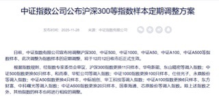 中证指数官网已经公布了沪深300等指数的2025年度12月调仓信息,包括调入和调出的公司,将在12月12日收盘后生效。