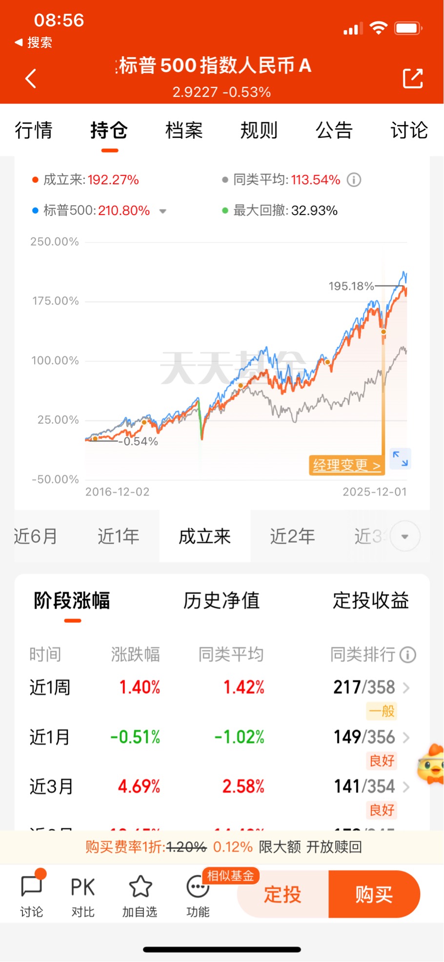 $嘉实沪深300ETF联接A$ $鹏扬沪深300质量成长低波动A$ $易方达标普500指数人民币A$