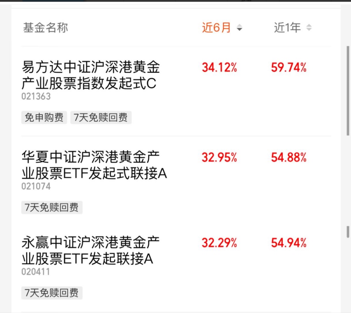 利好一波接一波,黄金涨得真给力,这只比同类业绩靠前些$易方达中证沪深港黄金产业股票指数发起式C$