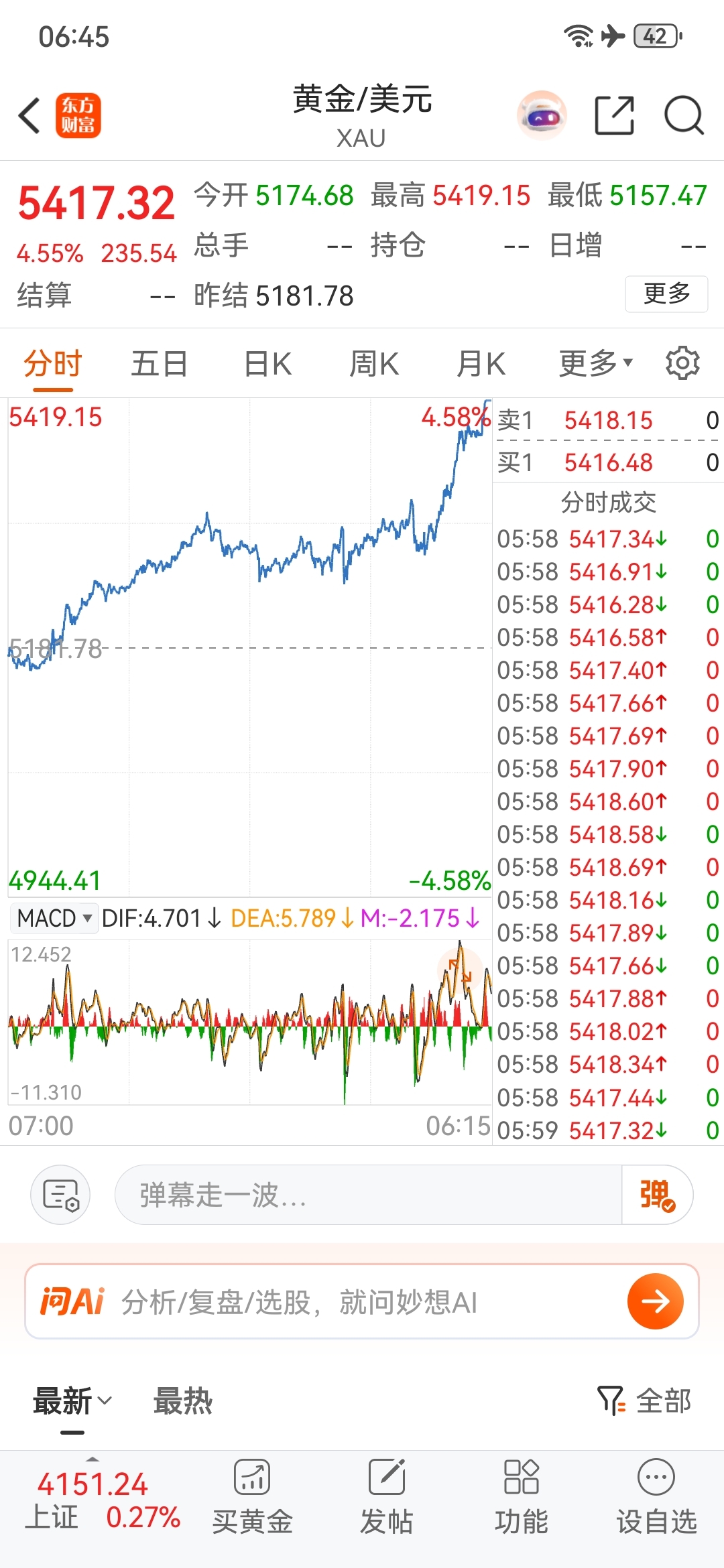 半夜醒过来有惊喜,黄金上5400了,昨天不拉板,今天还不是高开,三傻给我冲。