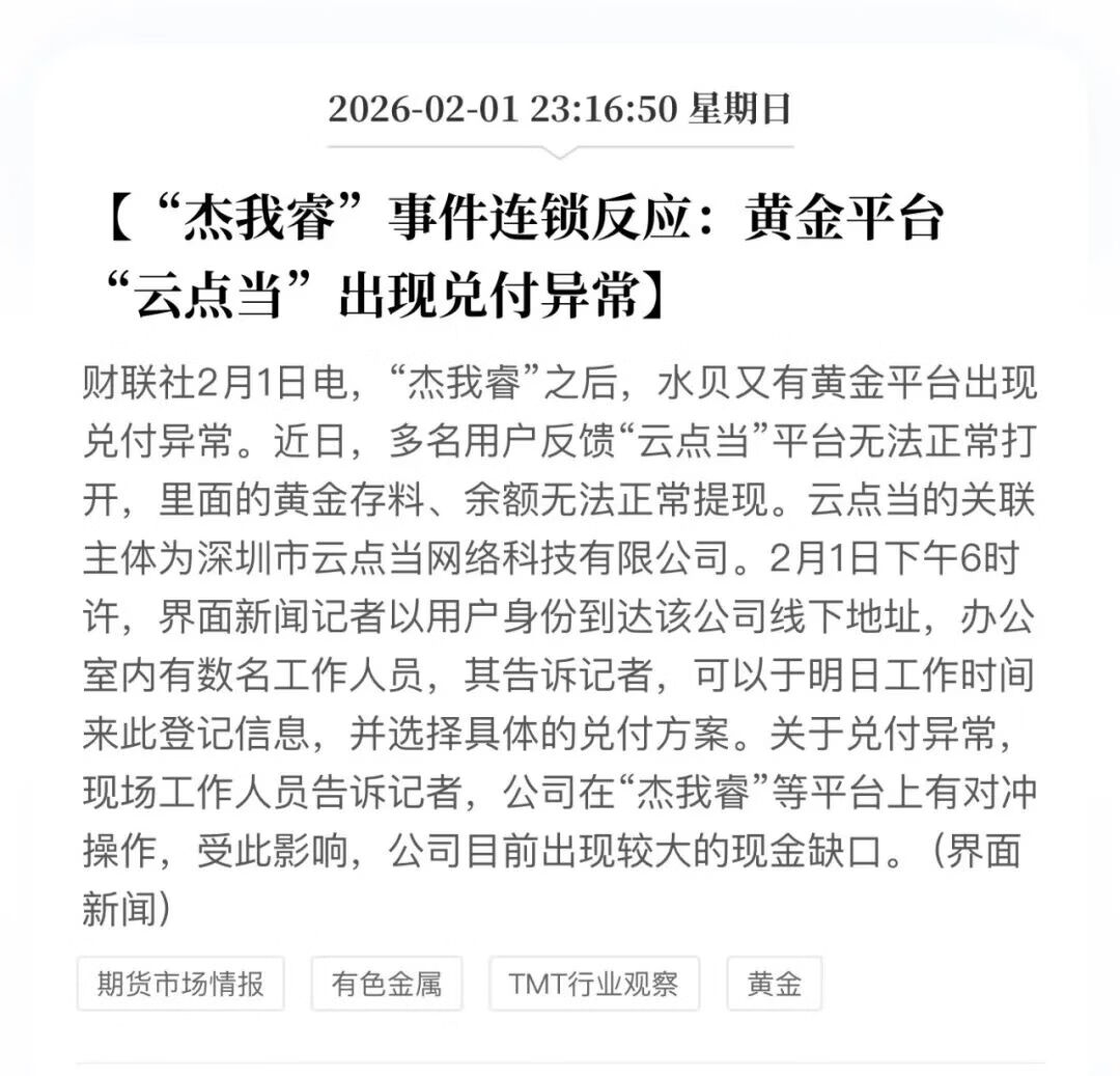 据传这个平台是收取很低的保证金给客户加杠杆,比如客户给30元保证金就能锁定1克黄金的涨跌,之前黄金单边暴涨客户血賺,但平台没办法拿出那么多的利润兑现利润,多重压力下很容易崩盘。