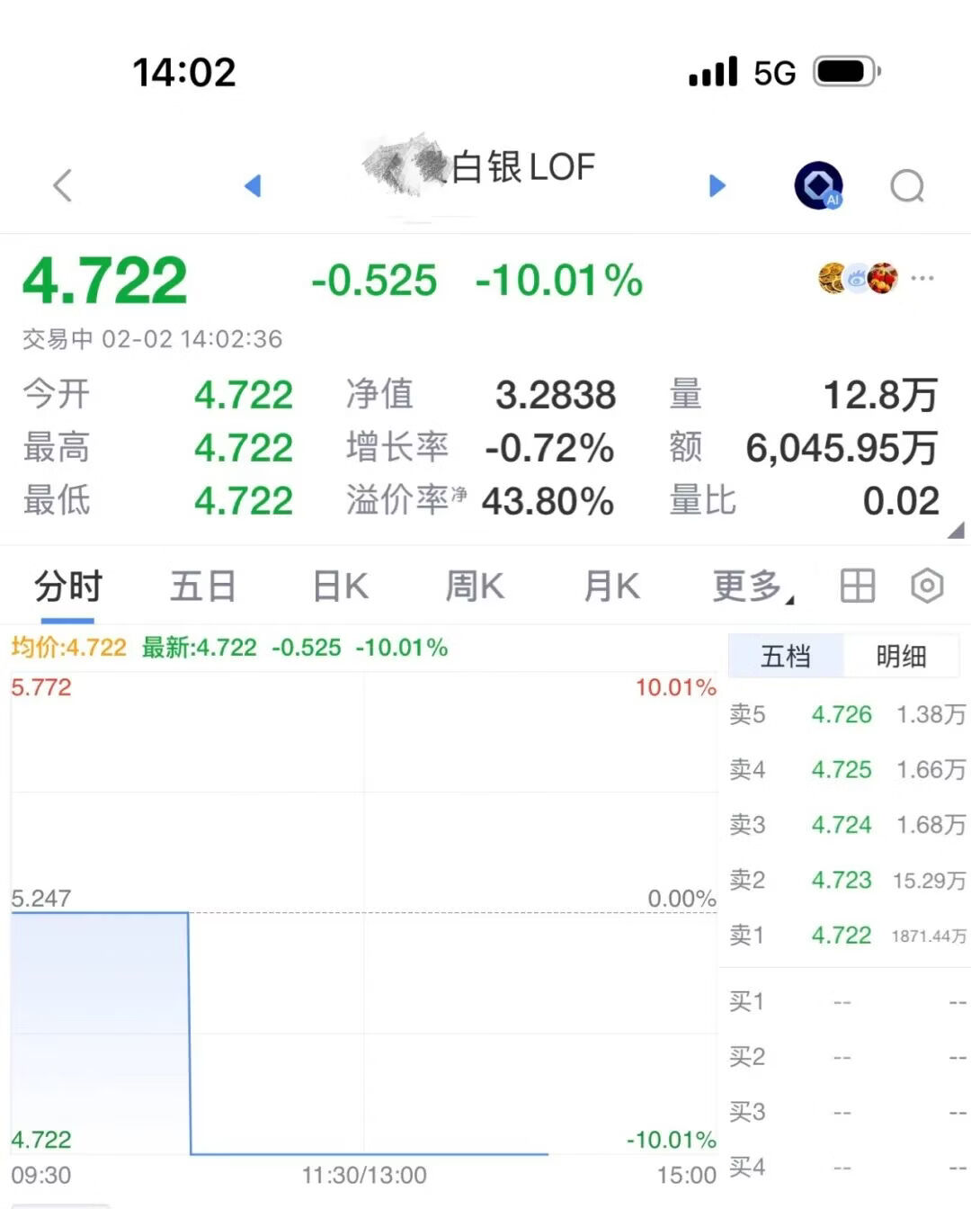 现货白银暴跌, 不出意外场内白银今天直接跌停,跌停板上还有1800多万手等着卖出,加上场内溢价率依然高达43.8%,估计明天还会跌停。从金银比(金价/银价)来看,相当于黄金,白银明显偏贵。长期我依然看好黄金,但短期内可能还会有较大的波动。特朗普对盟友重拳出击,不仅对盟友频频加征关税,更是觊觎盟国的领土(丹麦的格陵兰岛、加拿大),全球资本对美元的信任已经不可逆的产生了损伤。长期市场的对黄金的认同可能会越来越高。