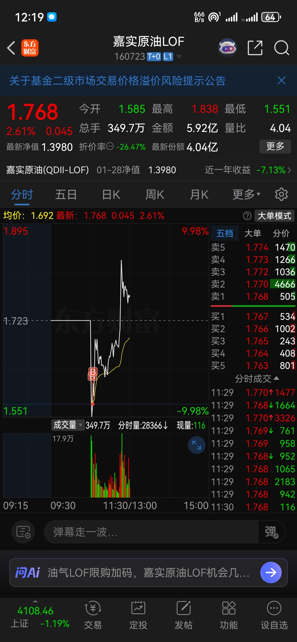 $嘉实原油LOF(SZ160723)$ 黄金白银拉了,开盘低位进原油