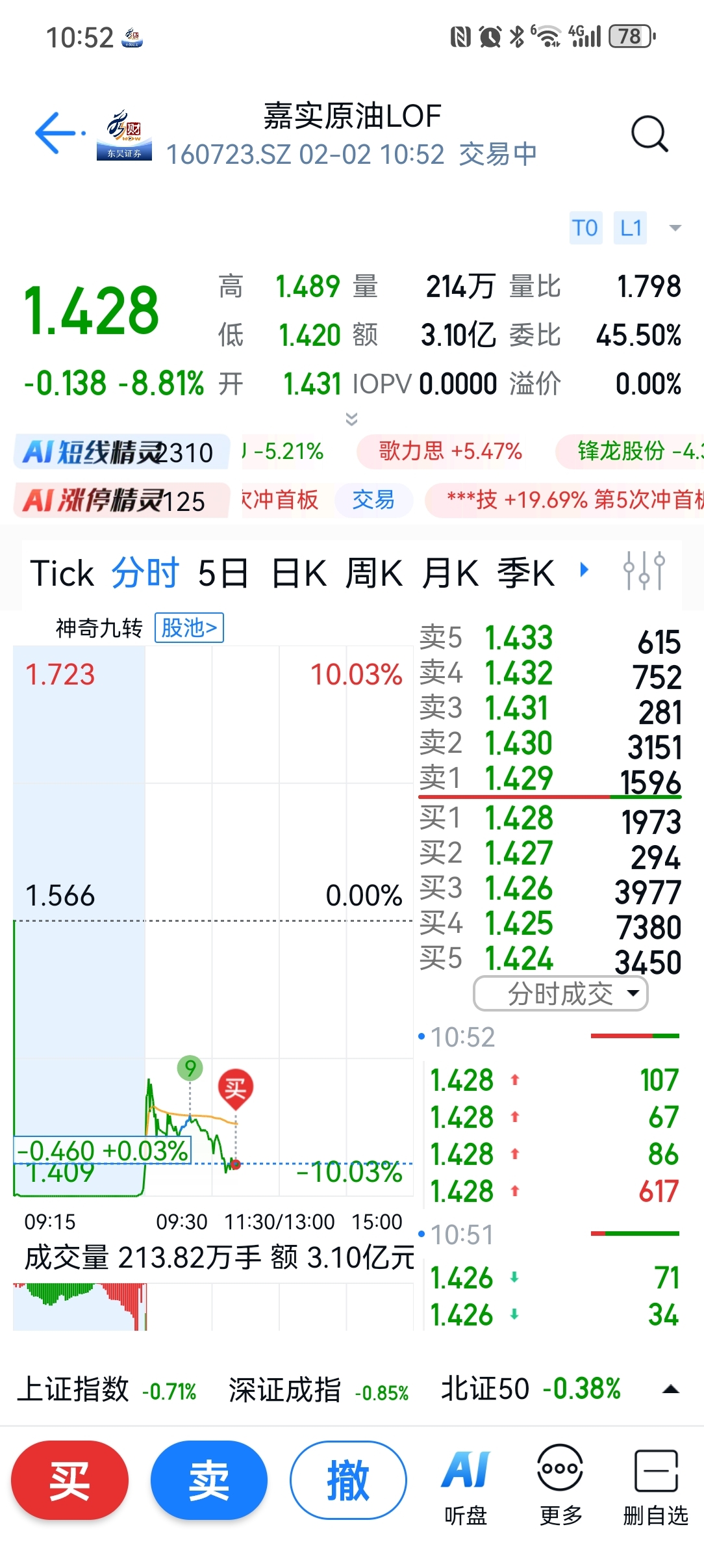 $嘉实原油LOF(SZ160723)$ 没溢价了。冲啊