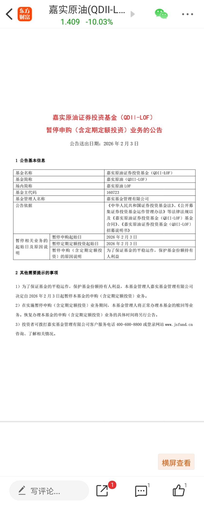 $嘉实原油LOF(SZ160723)$ 有大佬解释解释这是啥意思么?