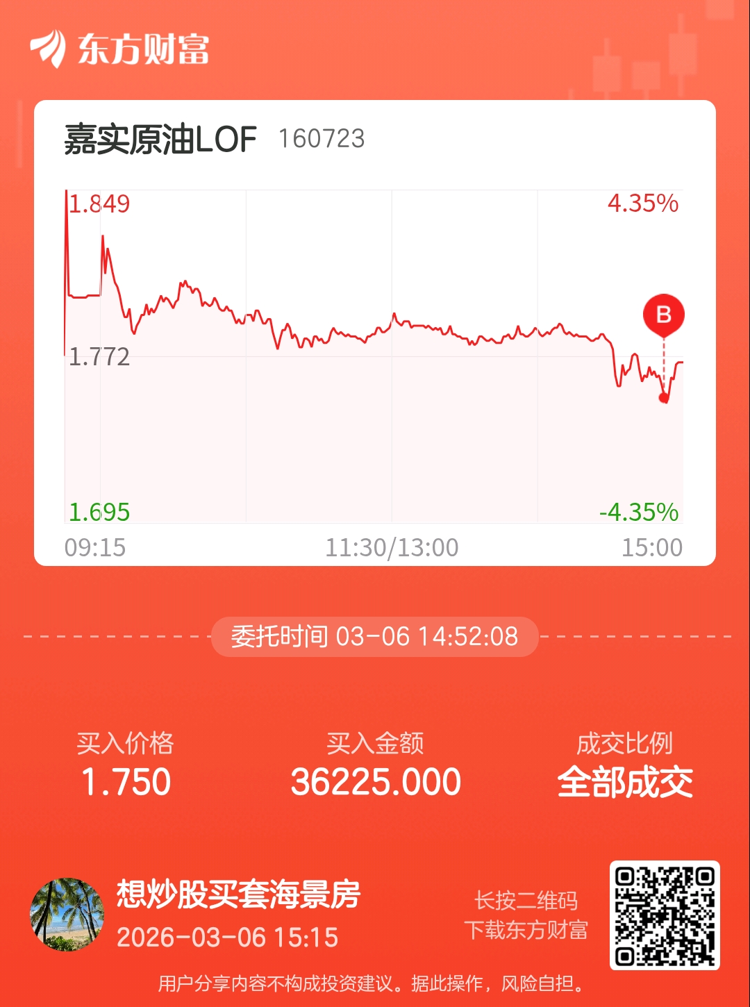 温馨提示: 1.根据《证券法》规定,禁止编造、传播虚假信息或者误导性信息,扰乱证券市场;2.用户在本社区发表的所有资料、言论等仅代表个人观点,与本网站立场无关,不对您构成任何投资建议。用户应基于自己的独立判断,自行决定证券投资并承担相应风险。《东方财富社区管理规定》
