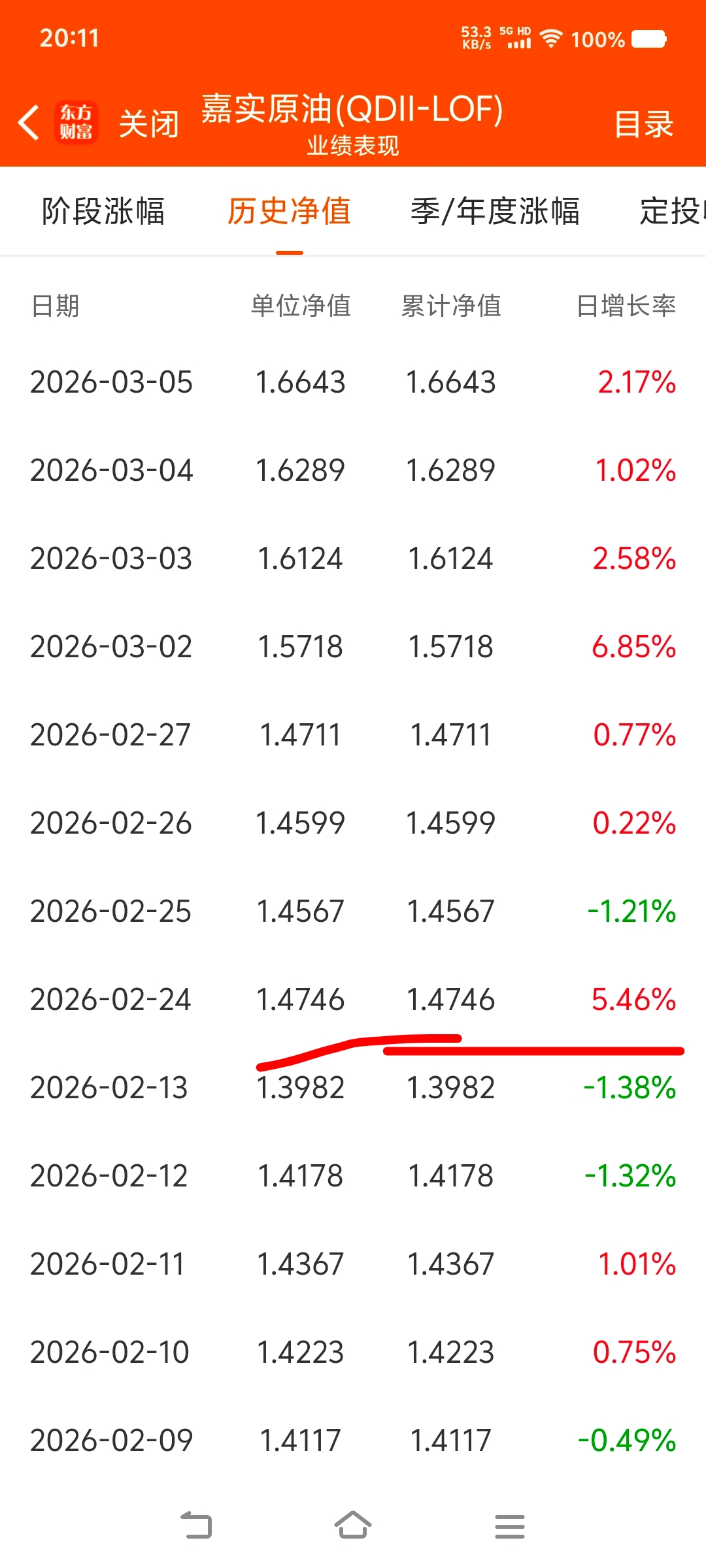 $嘉实原油LOF(SZ160723)$ 24号到3月5号 都一样都是大涨20百分