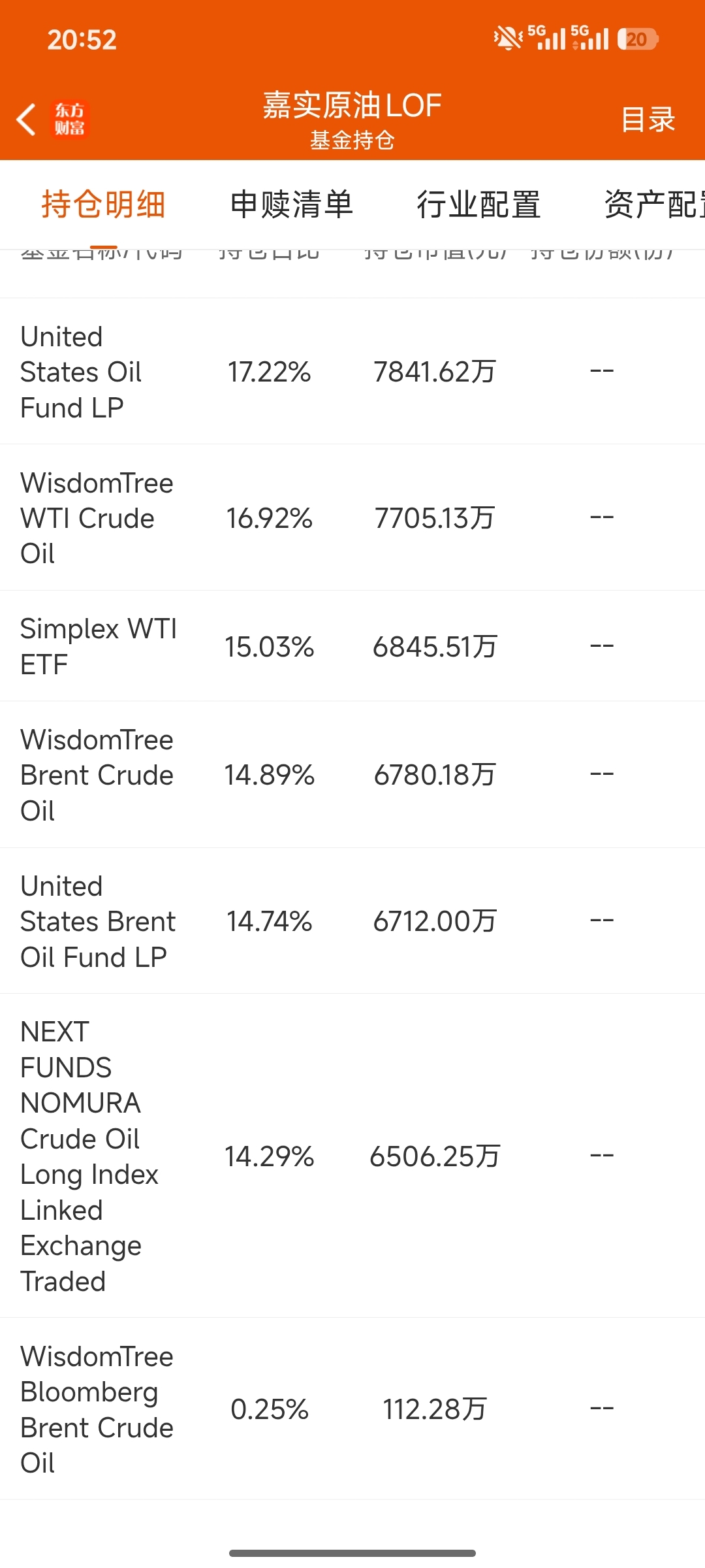 $嘉实原油LOF(SZ160723)$ 谁能把这些持仓股昨天的涨跌幅找出来