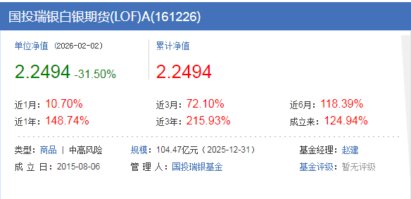 上面这只基金,国投瑞银白银期货(LOF)A(161226),因为近半年净值的凶猛上涨,已经成了基金江湖无人不知的公募产品。