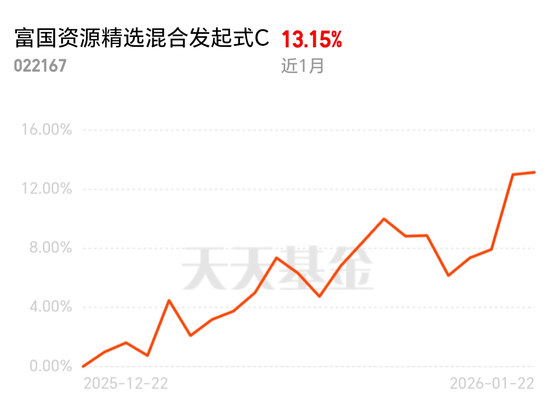 资源品赛道迎高光!$富国资源精选混合发起式C$今日大涨2.60%,近1月13.2